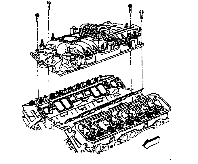 Use the gasket locator pins in order to properly seat the lower intake manifold gasket onto the cylinder head.