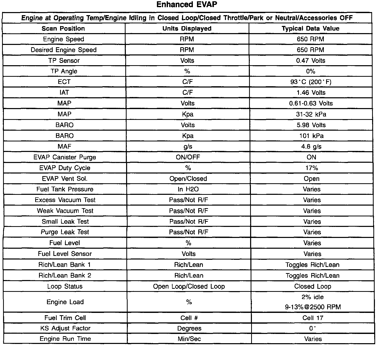 Scan Tool Data List