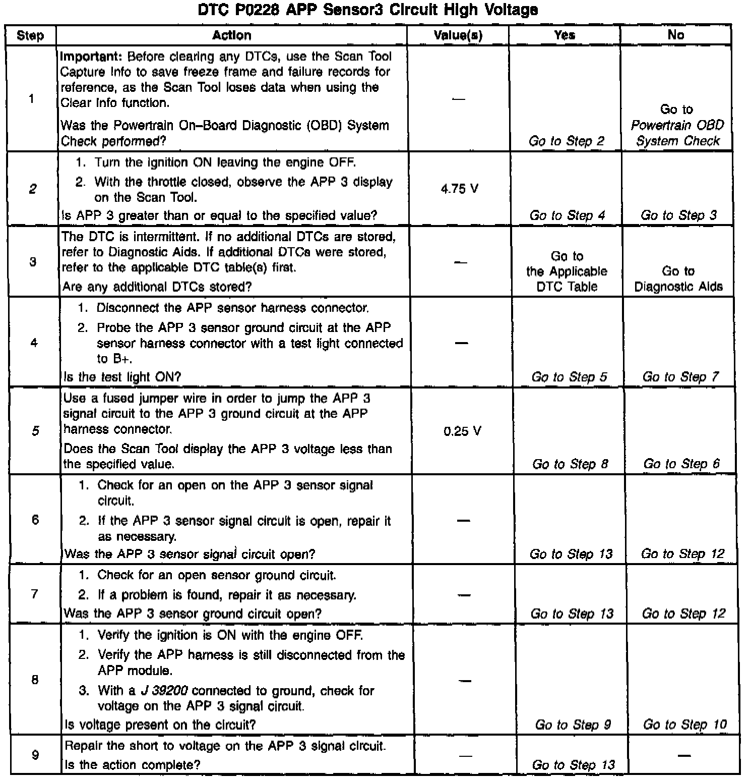 2. This step determines if P0223 is a hard failure or an intermittent condition.