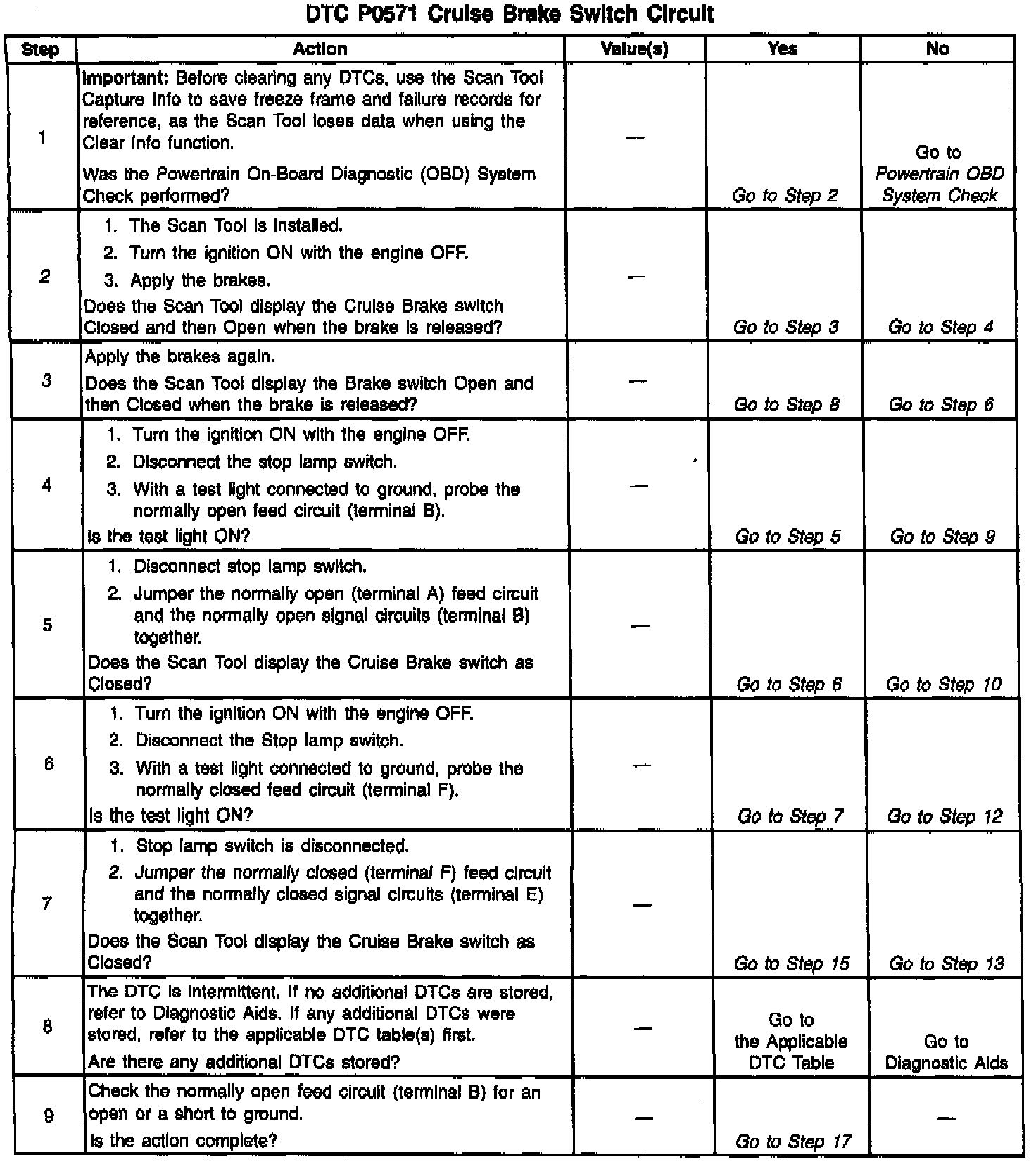 The number(s) below refer to the step number(s) on the Diagnostic Table.