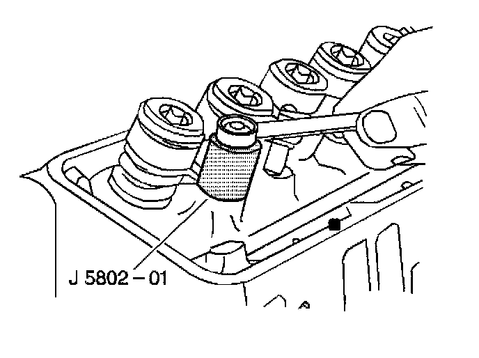 1. Place the J 5802-01 over the valve rocker arm ball stud to be removed.