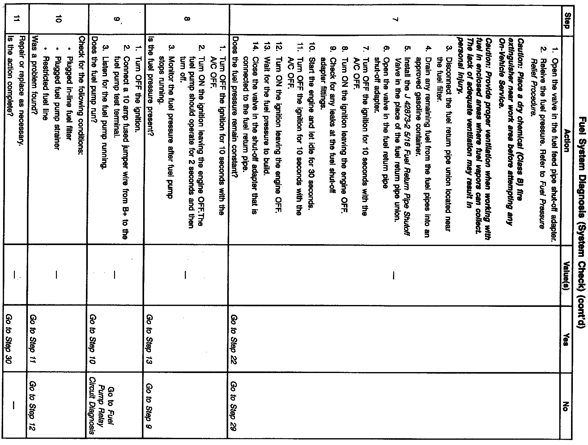 The numbers below refer to the step numbers on the diagnostic table.