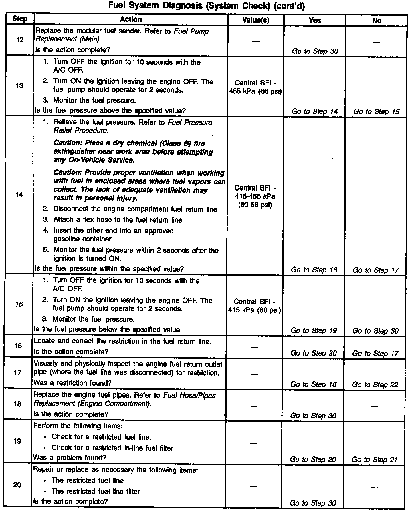 15. If the fuel pressure is less than 415 kPa (60 psi), it falls into the following 3 areas: