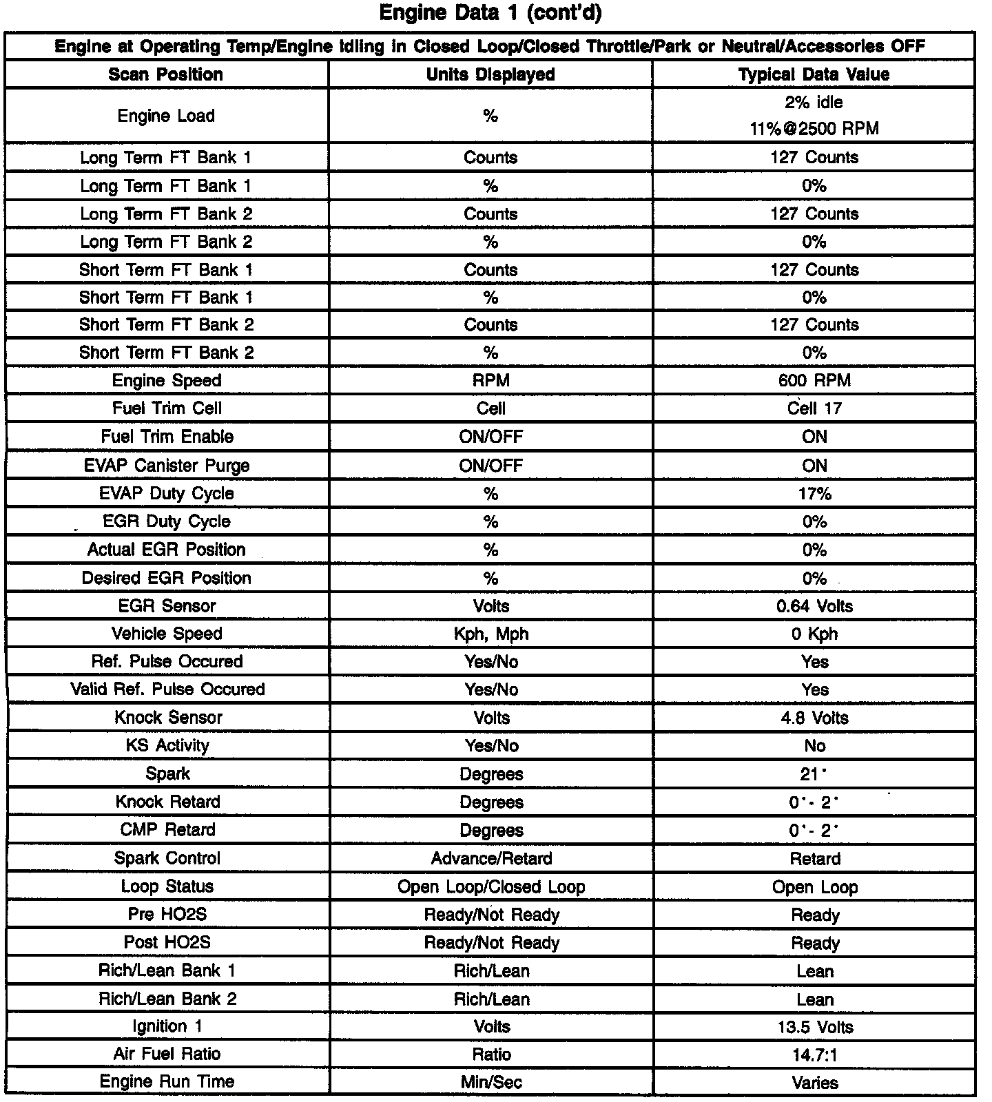 Scan Tool Data List
