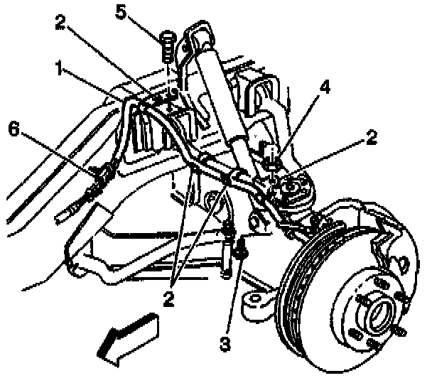 6. Remove wheel speed sensor mounting clip (2) on the frame rail.