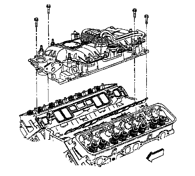 8. Apply threadlock GM P/N 12345382 or equivalent to the threads of the lower intake manifold bolts.
