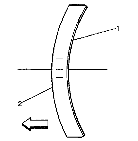 8. Ensure that the crown of the crankshaft balancer washer (2) is faced away from the engine.