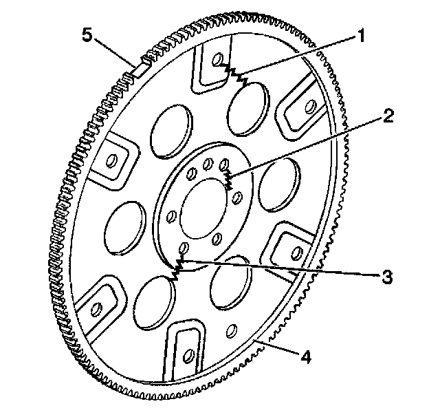 IMPORTANT: Do not attempt to repair the welded areas that retain the ring gear to the engine flywheel plate. Always install a NEW engine flywheel.
