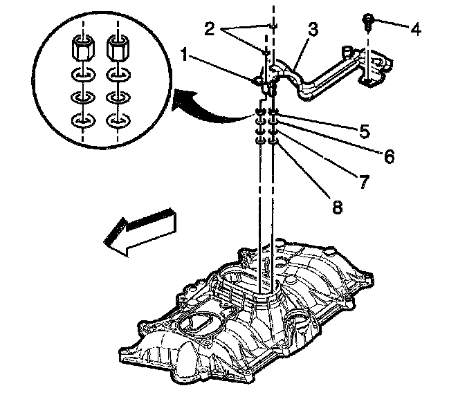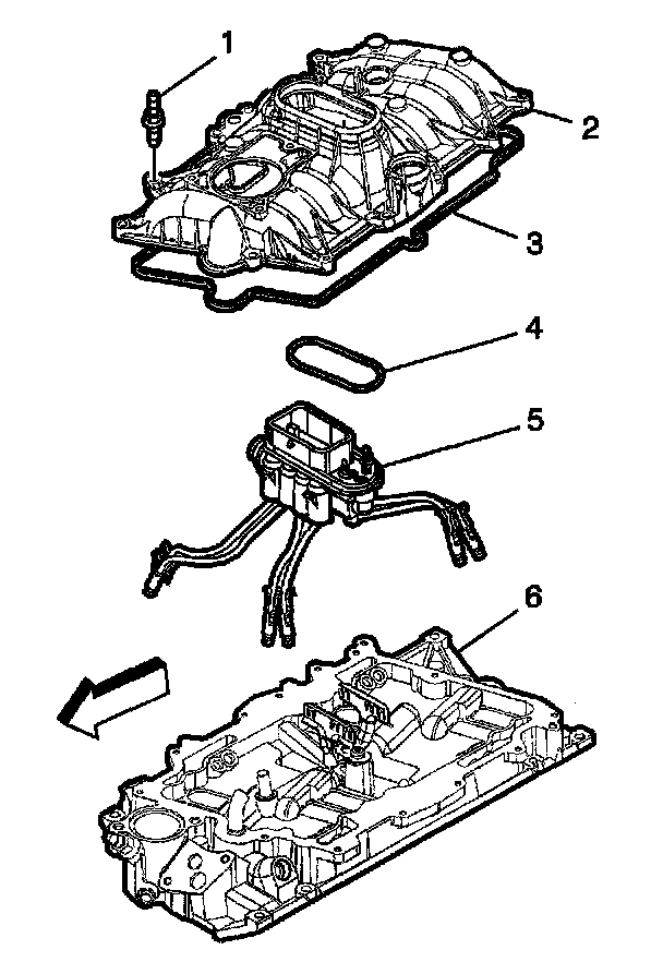 29. Discard the upper intake manifold to lower intake manifold gasket (3).