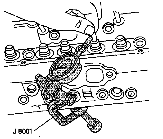 IMPORTANT: Exhaust valves with excessive valve stem-to-guide clearance must be replaced with the available service valve that has an 0.0774 mm (0.0305 inch) oversize valve stem. The intake valves are NOT available with oversize valve stems. Replace the cylinder head if after using a NEW intake valve in order to measure the valve stem-to-guide clearance, the valve stem-to-guide clearance is not within specifications.