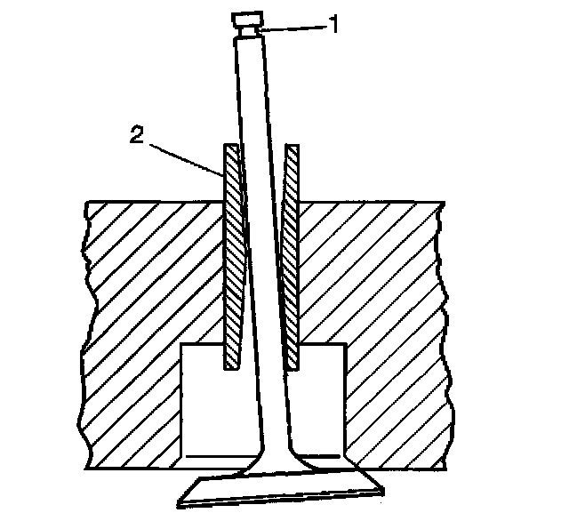 2. Improper valve stem (1) to valve guide (2) clearance may cause excessive oil consumption.