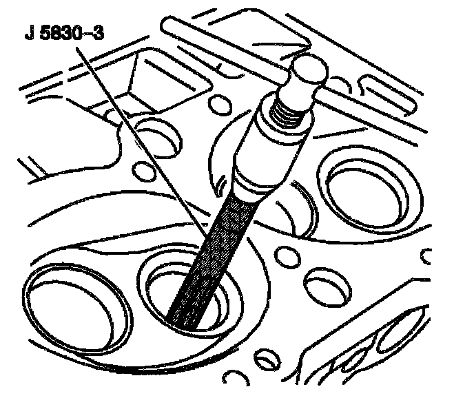 3. Use the J 5830-3 in order to ream the exhaust valve guide in order to achieve the correct valve stem-to-guide clearance.