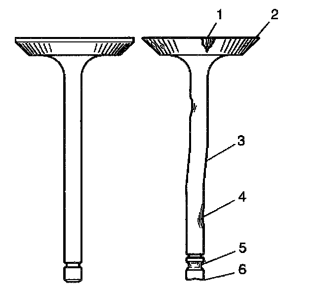 Replace the valve if the edge of the valve head is less than 0.79 mm (0.031 inch) thick after grinding.