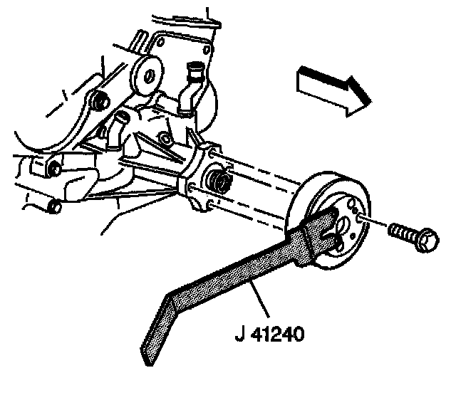 6. Install the fan and water pump pulley and bolts using the J 41240.