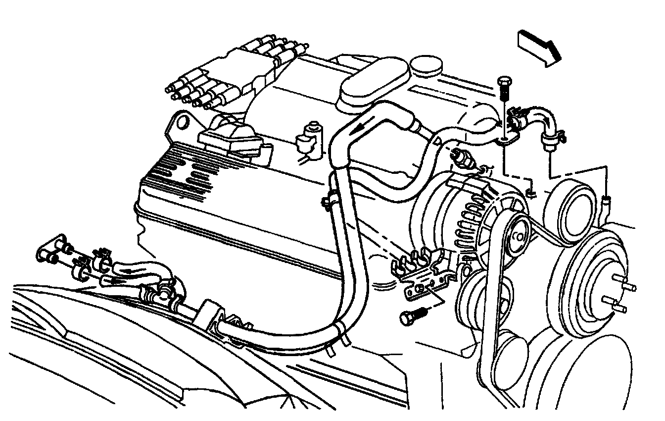 6. Heater outlet hose at tee fitting.
