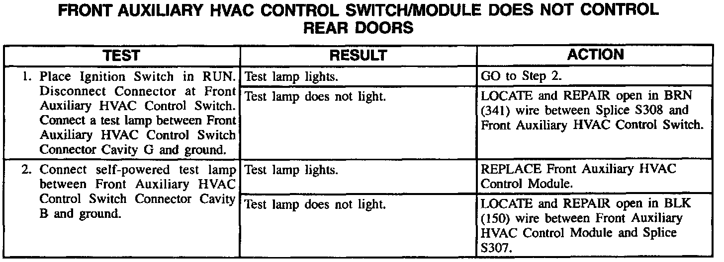 Front Auxiliary HVAC Control Switch/Module Does Not Control Rear Doors: