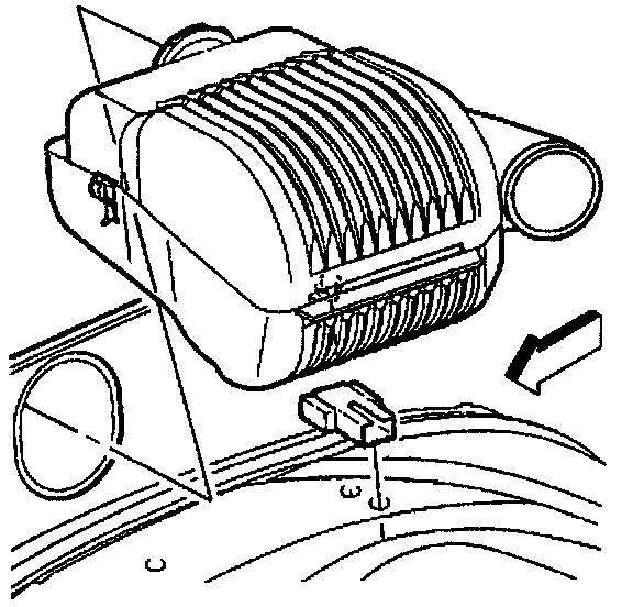 - Pivot the air cleaner in an upward direction to release the top barb on the intake duct.