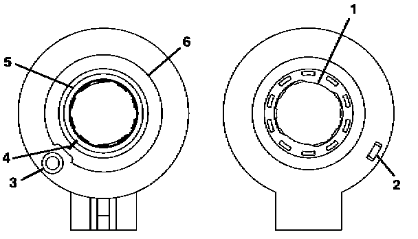 18. From the technicians point of view, the BACK of the sensor will have an alignment tab (1) for installation. This sensor does not have double D flats.