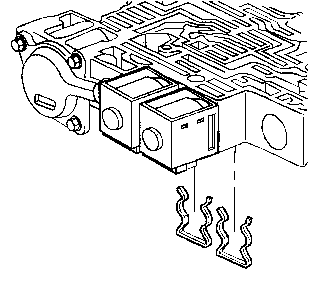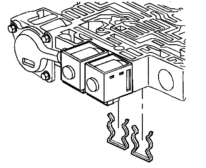 4. Install the shift solenoid retainers.
