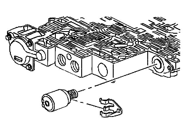 8. Remove the pressure control solenoid retainer.
