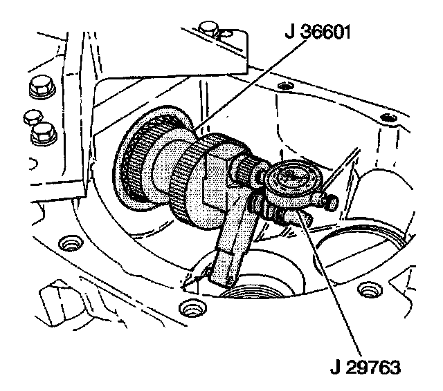 6. For the T, K1, and K2 models, insert the threaded rod of the J36601 through the pinion bearings.