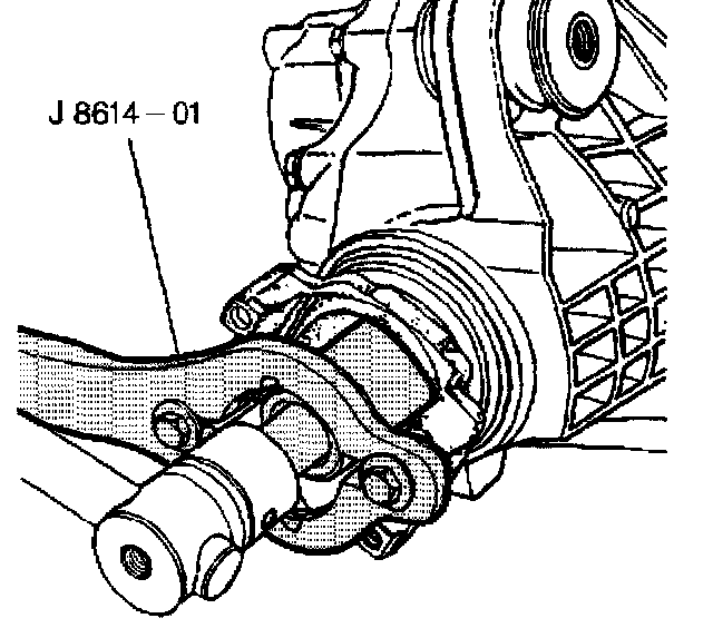 - Tighten the nut until no end play is detectable while holding the flange with the J8614-01.