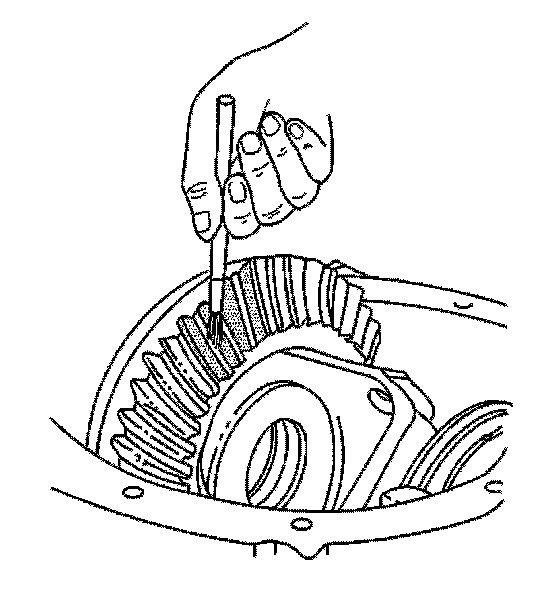 2. Use a medium stiff brush in order to sparingly apply gear marking compound, GM P/N 1052351 (Canadian P/N 10953497) or equivalent, to all of the ring gear teeth.