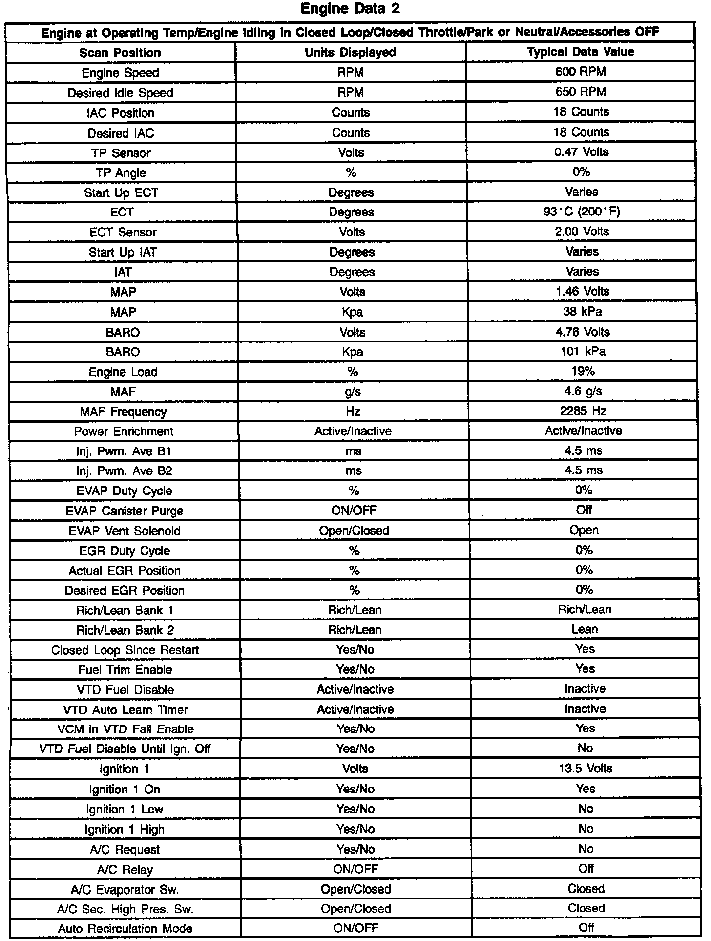 Scan Tool Data List