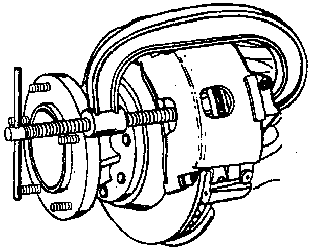 6. Position a C-clamp and tighten until the piston bottoms in the bore.