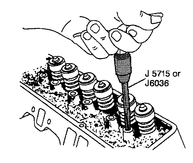 Use J 5715 for 0.0762 mm (0.003 inch) oversize valve rocker arm ball studs, or J 6036 for 0.3302 mm (0.013 inch) oversize valve rocker arm ball studs.