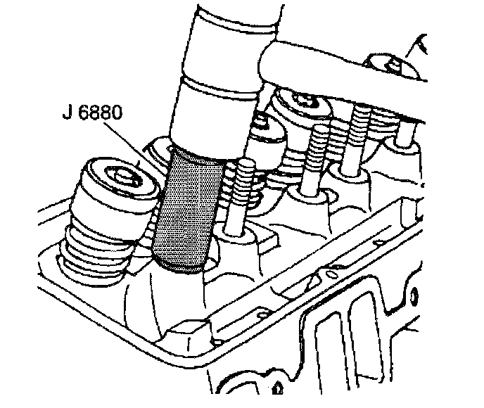The valve rocker arm ball stud is installed to proper depth when the J 6880 bottoms onto the cylinder head.