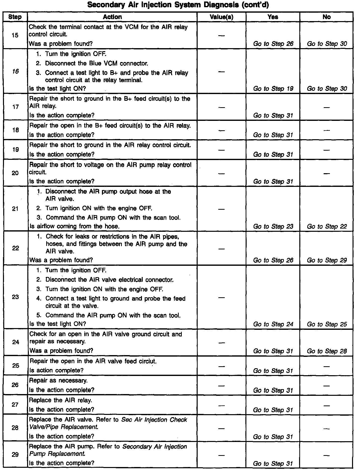 16. This step will determine if the problem is in the AIR relay control circuit or the VCM.
