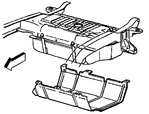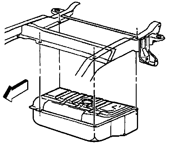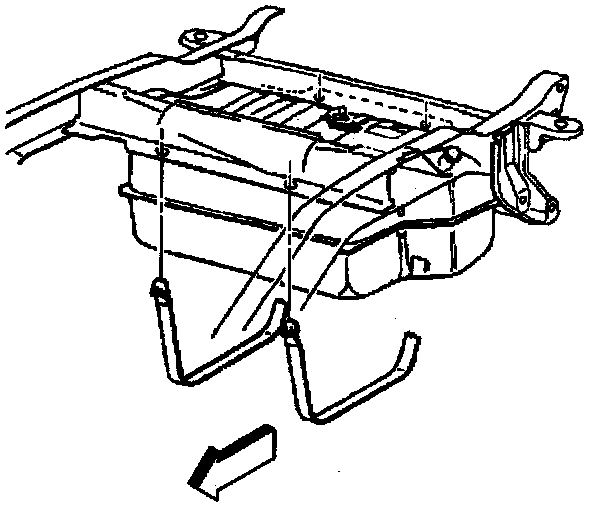 5. Support the fuel tank and remove the tank straps and insulator strips, if equipped.