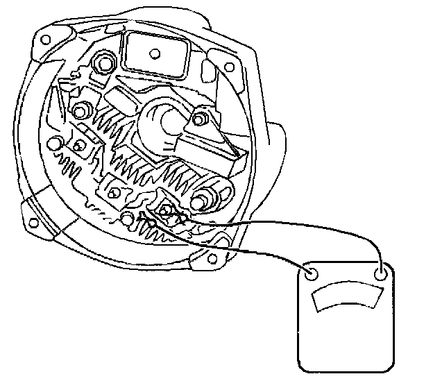 To test the rectifier bridge, connect an ohmmeter to the grounded heat sink and one of the three terminals. Press down firmly on the flat metal clip. Observe the ohmmeter reading. Then, reverse the connections to the grounded heat sink and the same metal clips. If both readings are the same, replace the rectifier bridge. A good rectifier bridge will give one high and one low reading. Repeat this procedure between the grounded heat sink and the other two terminals, and between the insulated heat sink and each of the three terminals. This makes a total of six tests, with two readings taken for each test.