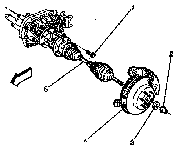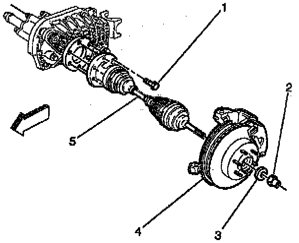 11. Remove the drive axle (halfshaft) (5) from the hub.