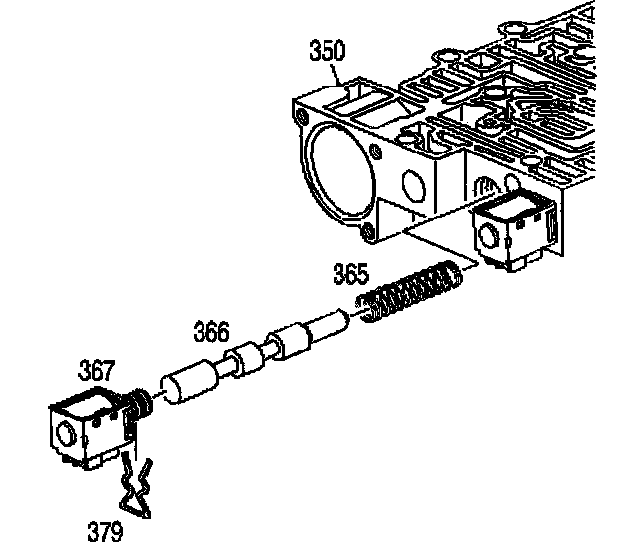 4. Disassemble the 1-2 shift solenoid retainer, solenoid, and valve train.