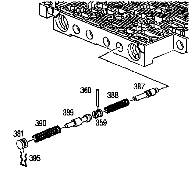 13. Disassemble the 3-2 downshift bore plug retainer, bore plug, and valve train.
