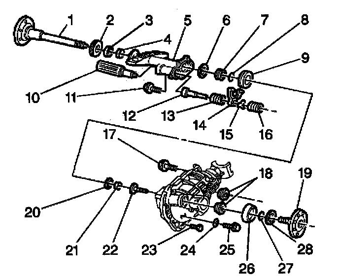 3. Remove the spring (16) from the carrier case. Take care not to dislodge the shim (20) from the axle shaft (output shaft).