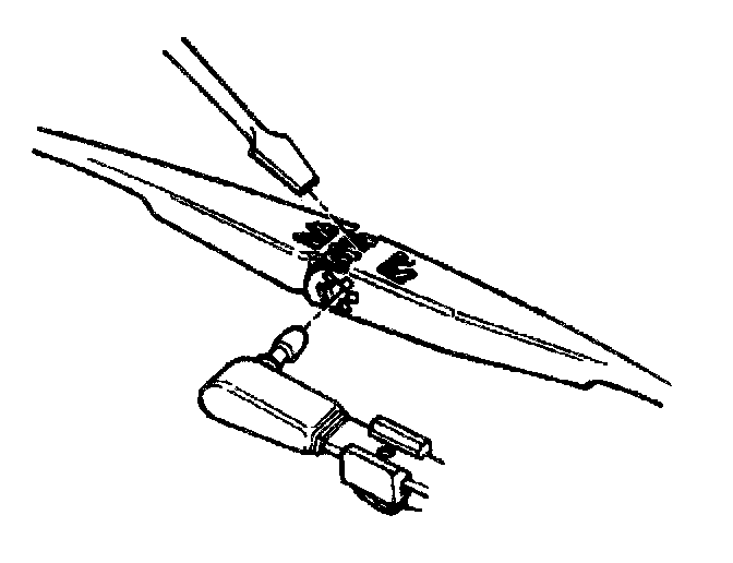 2. Pivot the screwdriver so that the blade tip presses downward on the retainer spring and releases the wiper blade from the pin of the wiper arm.