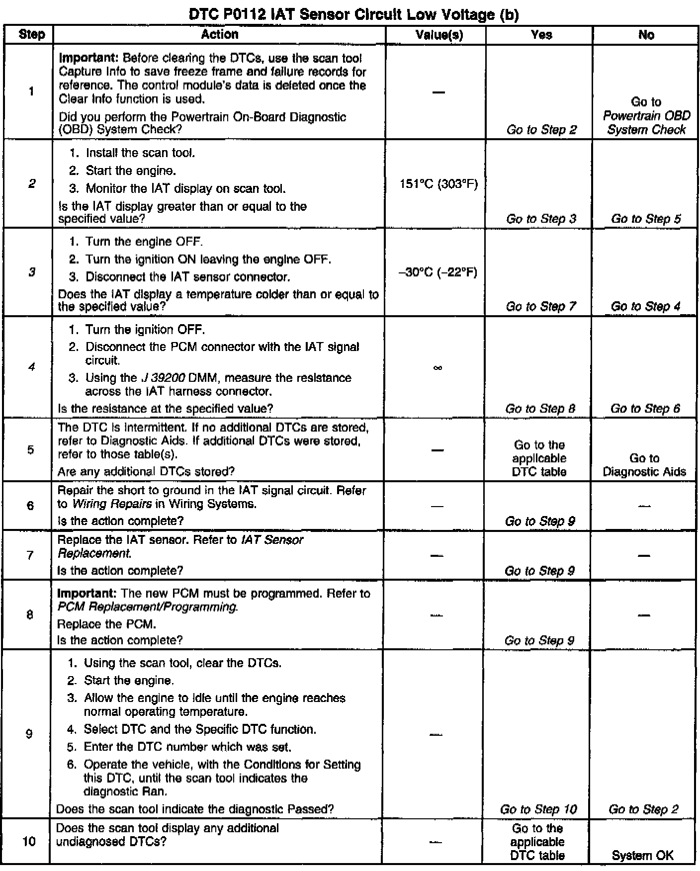 2. This Step determines if P0112 is a hard failure or an intermittent condition.