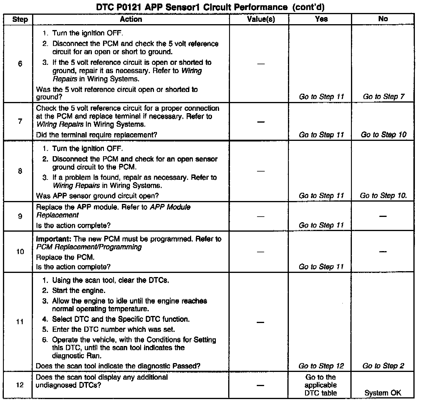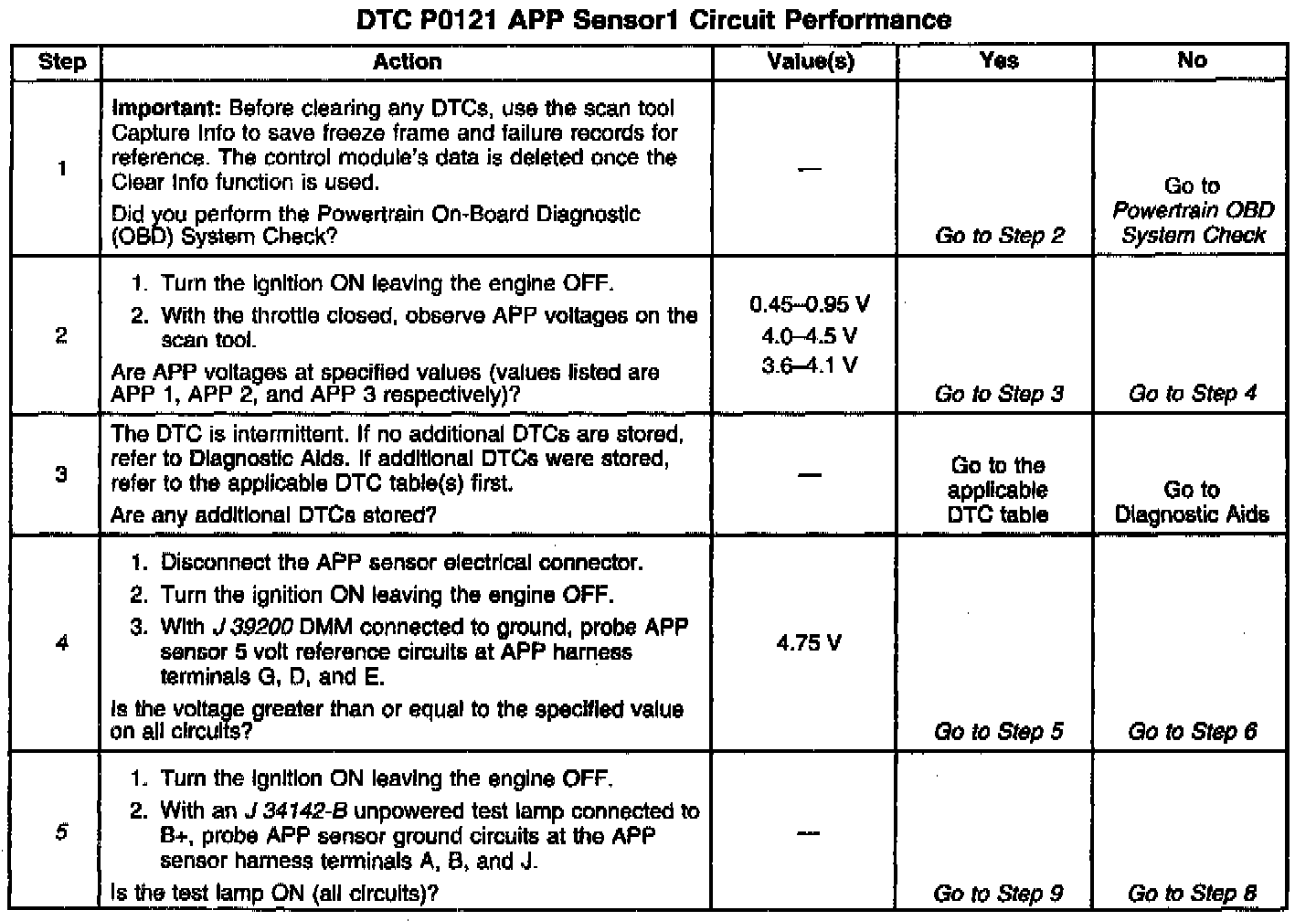 ^ The difference between APP 1 and APP 2 is greater than 0.23 volts (The PCM compares a pre-scaled voltage (internal to the PCM)).