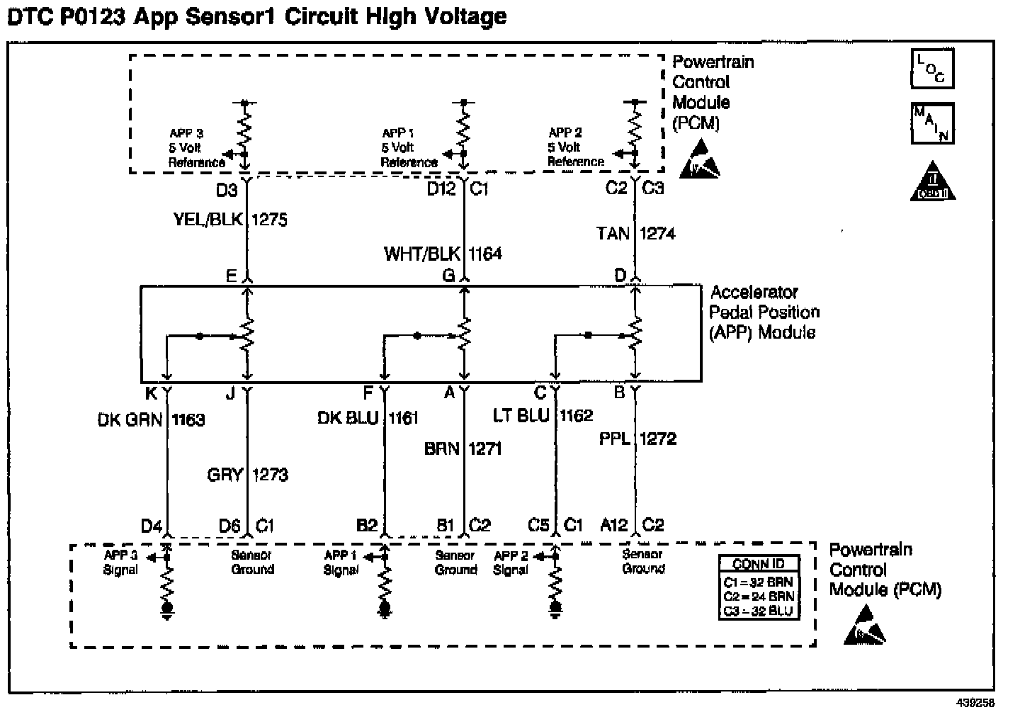 DTC P0123 App Sensor 1 Circuit High VoltageCircuit Description