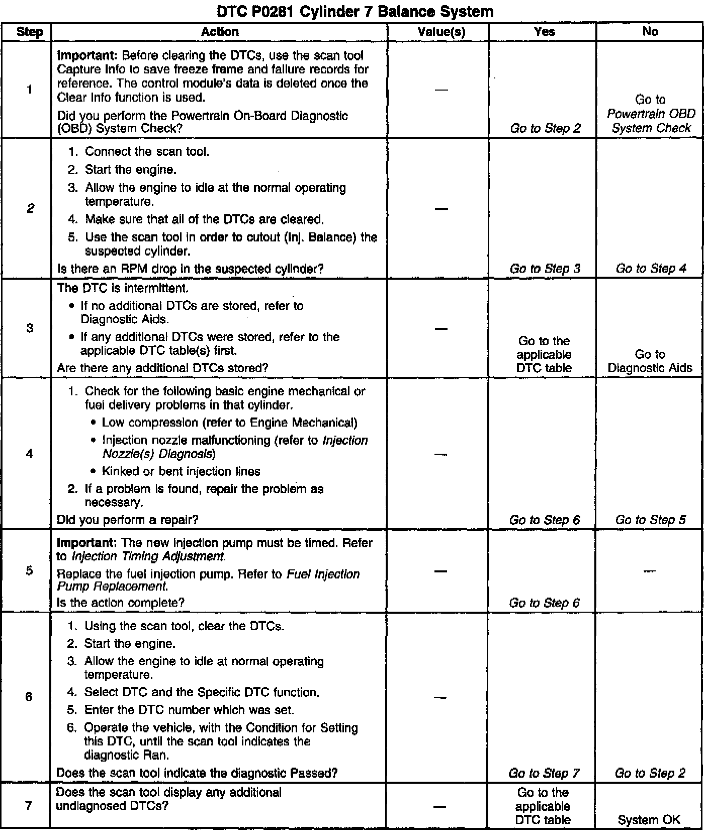 DTC P0281 Cylinder 7 Balance SystemCircuit Description