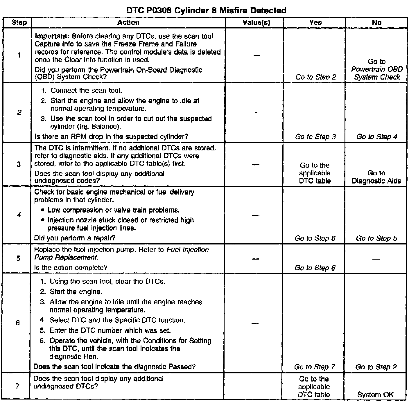 The number(s) below refer to the step number(s) on the Diagnostic Table.