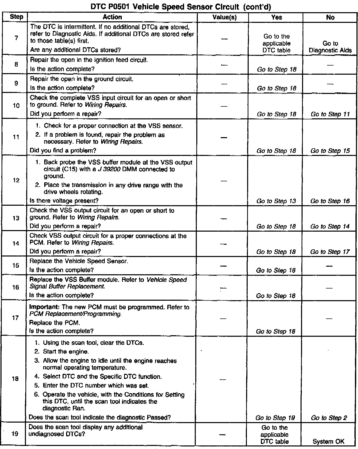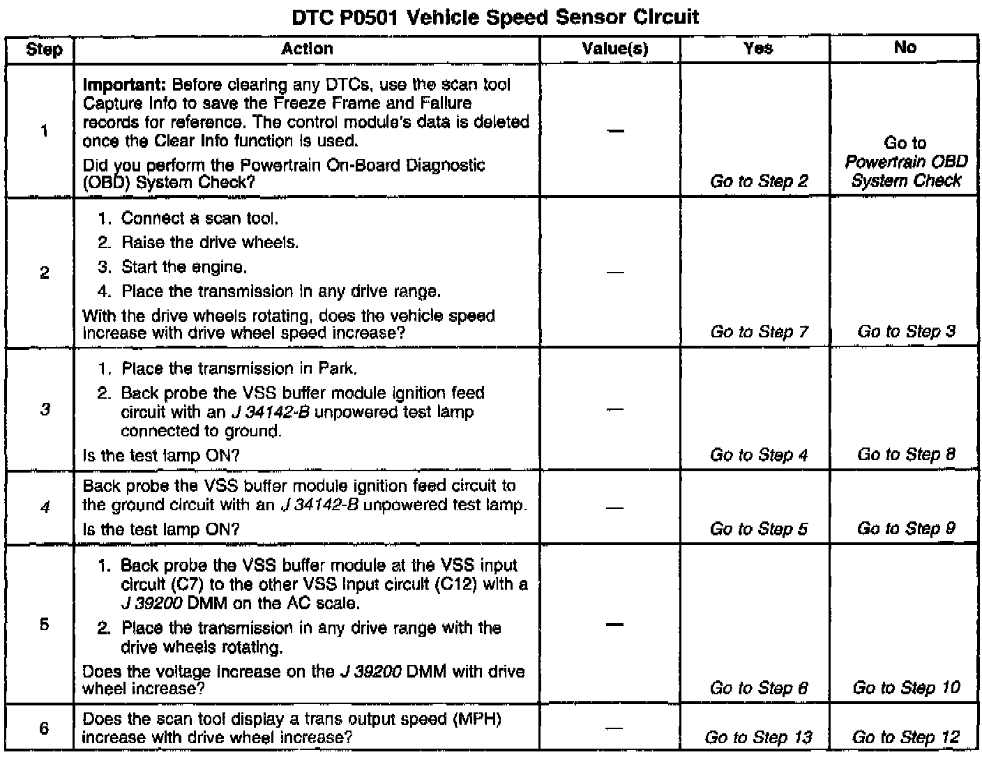 Check the connections at the VSS buffer and the PCM. Refer to 4L80E Diagnostic Trouble Codes if DTC P0722 or DTC P0723 is set.