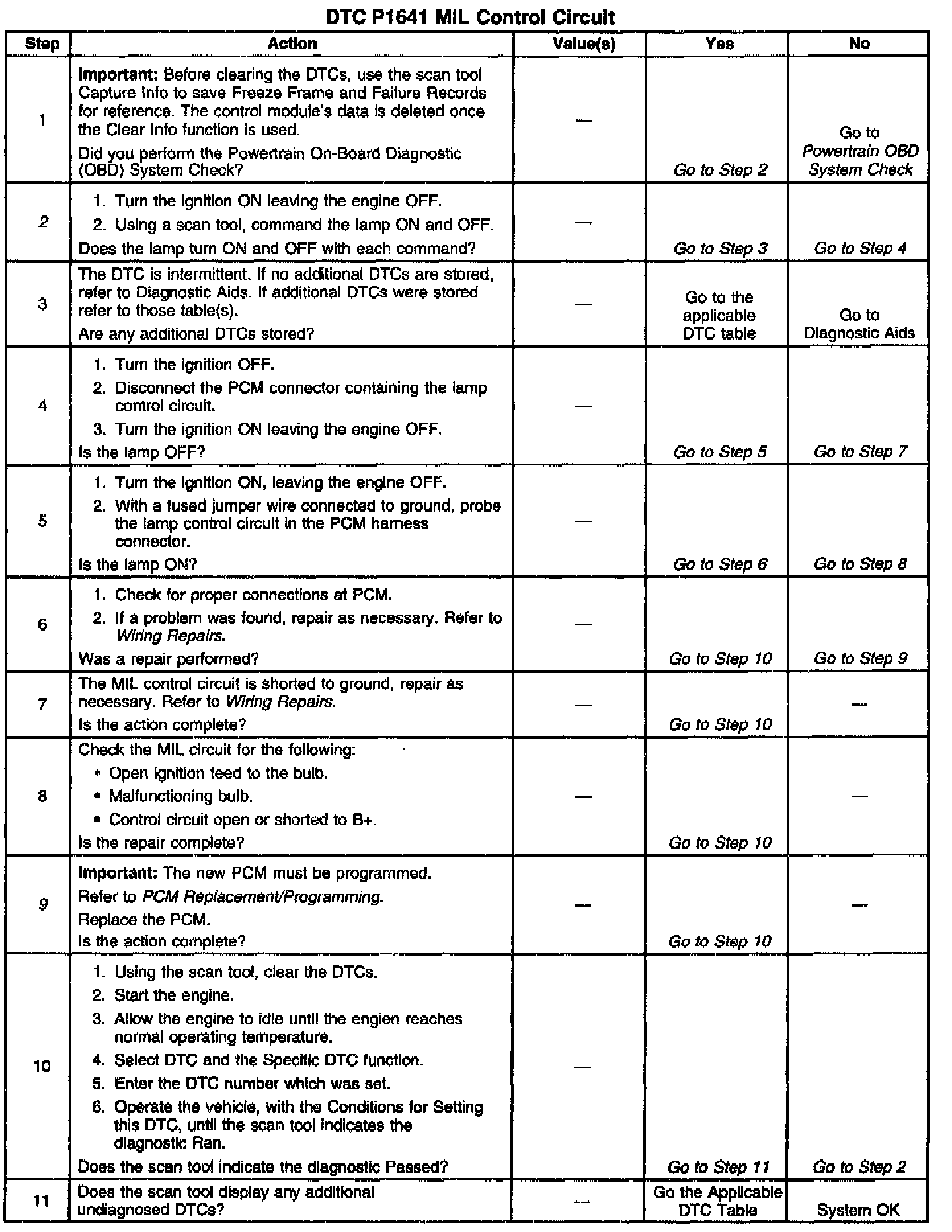 A malfunctioning bulb, the control circuit shorted to ground or battery voltage, will cause a P1641 to set.