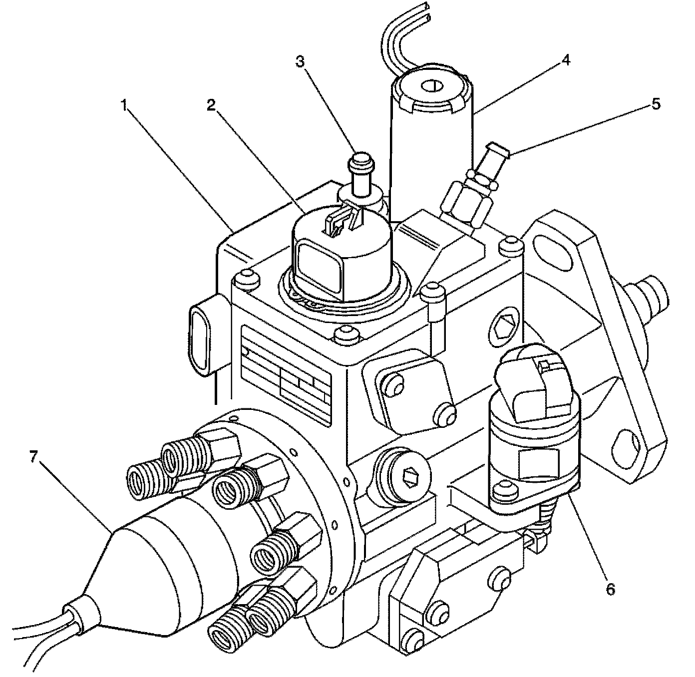The injection pump is a high pressure rotary type that is controlled by the PCM. The injection pump meters, pressurizes, and distributes fuel to the eight injector nozzles by way of eight high pressure lines. An outlet port in the injection pump allows the fuel to enter the fuel return system and then travel back to the fuel tank.