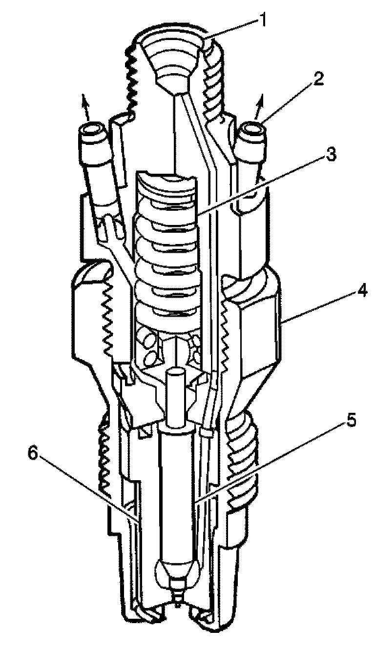 Each cylinder has an identical fuel injection nozzle mounted in the pre-combustion chamber. As the pressure wave of injection reaches a nozzle, the needle valve is lifted against spring force and fuel exits into the pre-combustion chamber of the cylinder as a highly atomized spray. A small amount of fuel travels between the needle valve and pintle nozzle, providing lubrication. Two passages inside the upper half of the nozzle body allow fuel that has lubricated the needle valve to exit into the fuel return system.