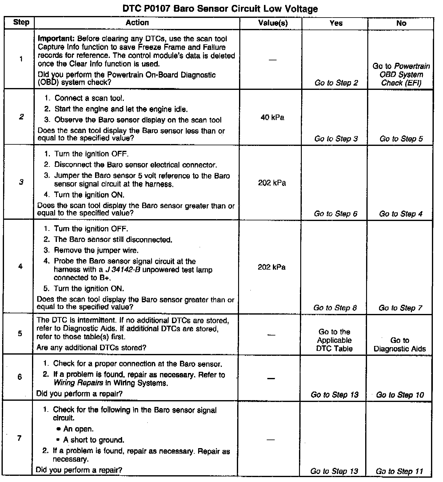 ^ The BARO Pressure signal is less than 0.78 volts (40 kpa).