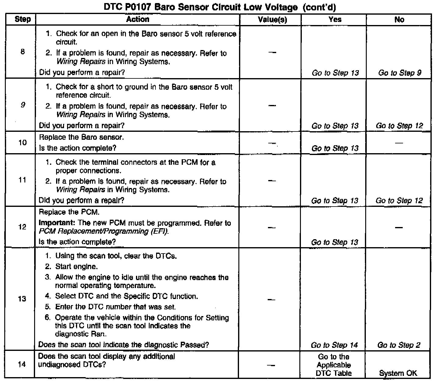 3. This step simulates conditions for a DTC P0108. If the PCM recognizes the change, the PCM and signal circuit are OK.